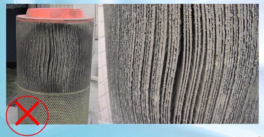 1)空压机处于多粉尘环境中运行将会影响空气过滤器使用寿命,增加维修成本,也将减少空压机产气量。如图3: